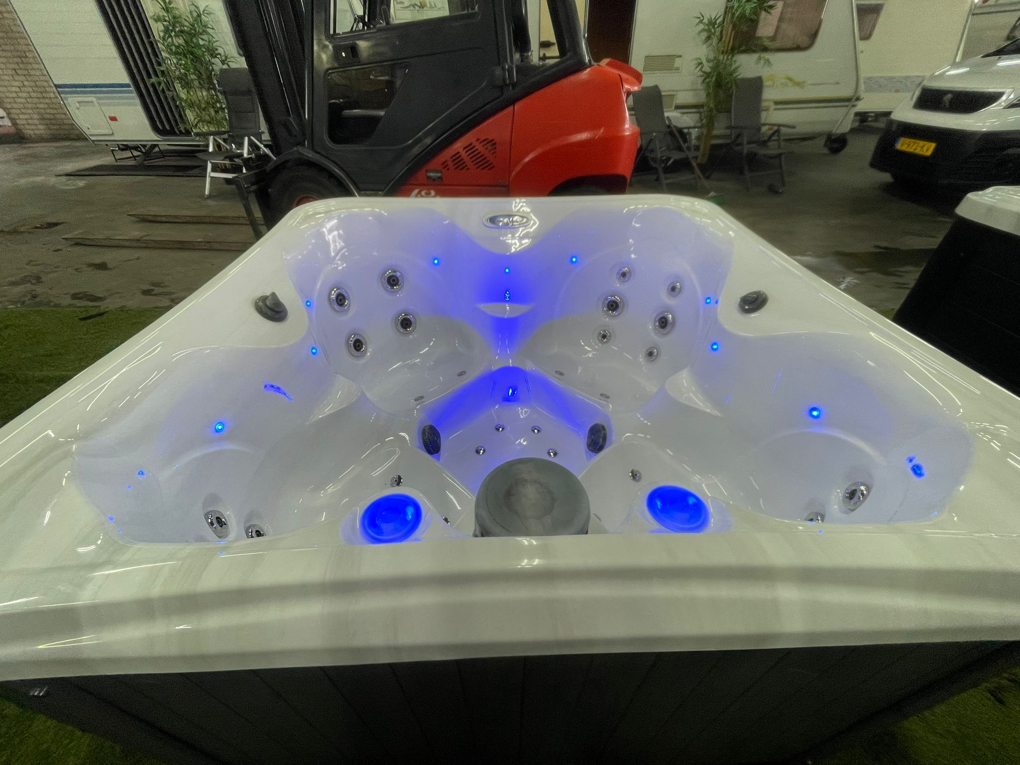 - We maken er een 230v kabel aan zodat de jacuzzi gelijk te gebruiken is
